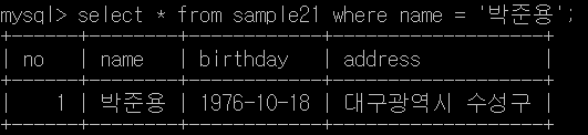 select * from sample21 where name = '박준용';